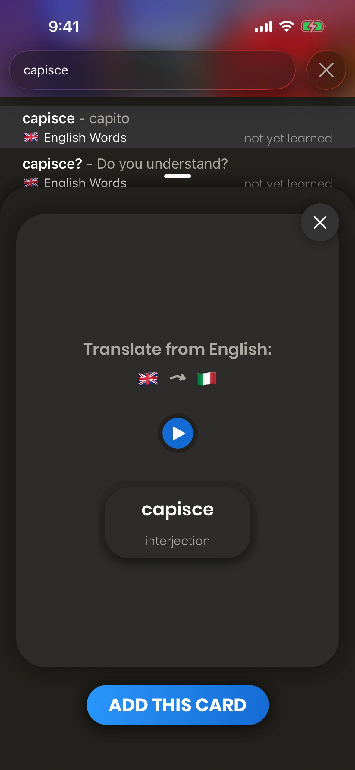 Just English lets you create your own cards too - but why not use the +30'000 high-quality cards that come with the app?
