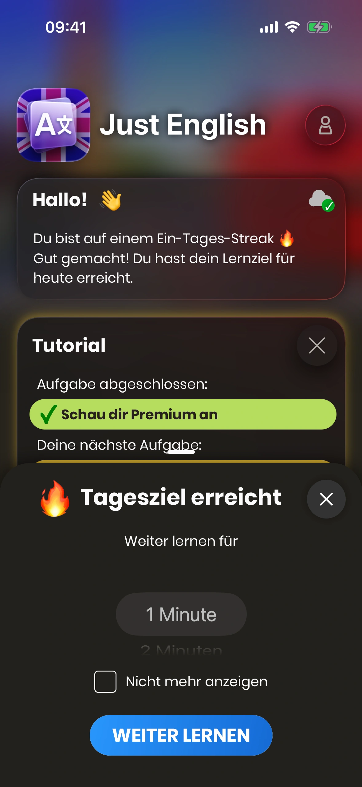 Nachdem die Session beendet wurde, erscheint ein Bottom Sheet, das dir anzeigt, ob du dein Tagesziel erreicht hast oder nicht.
