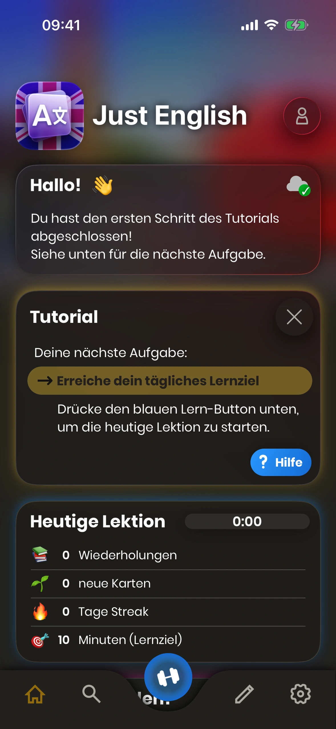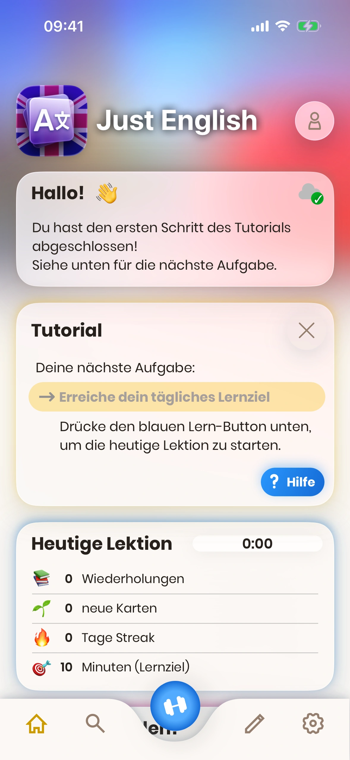 - Lernen‑Button: Startet deine tägliche Lernsitzung.