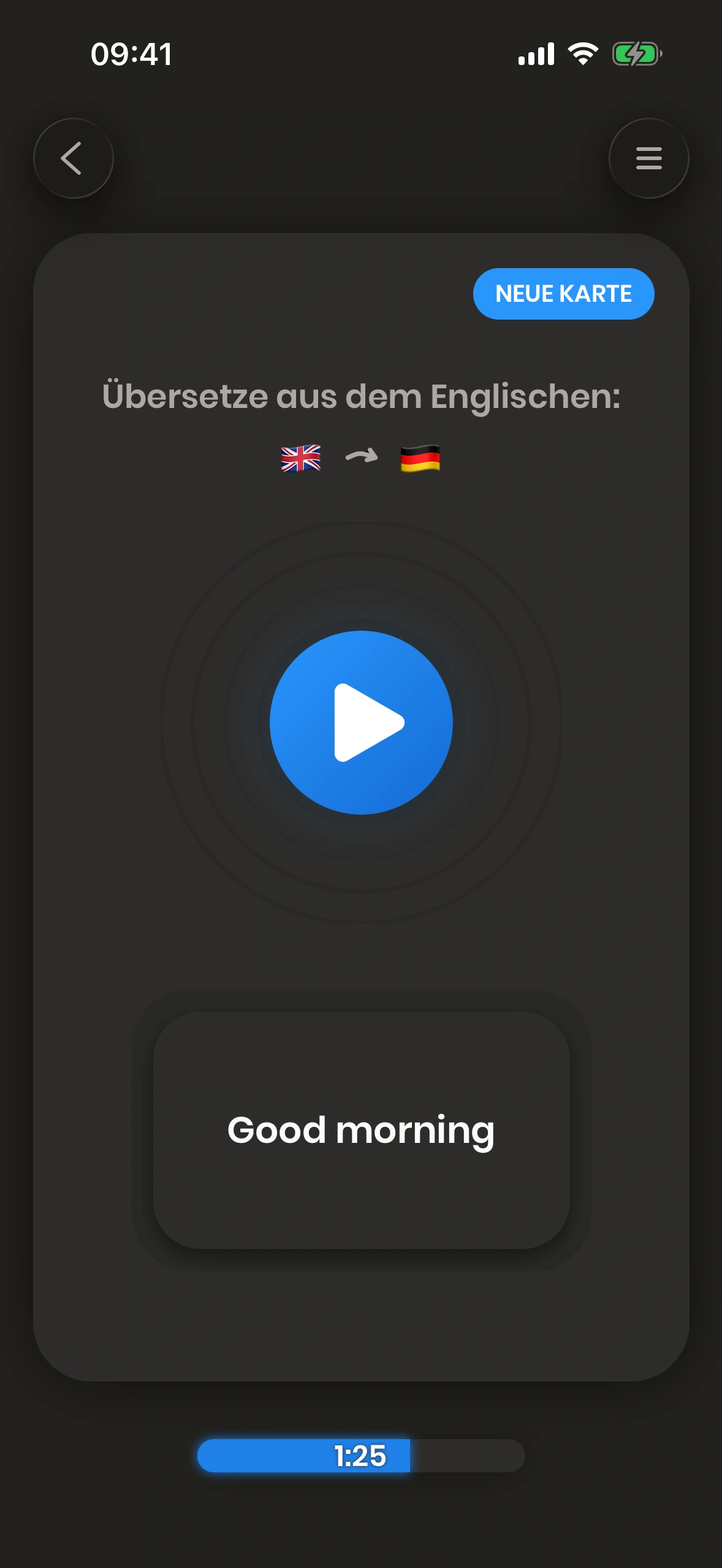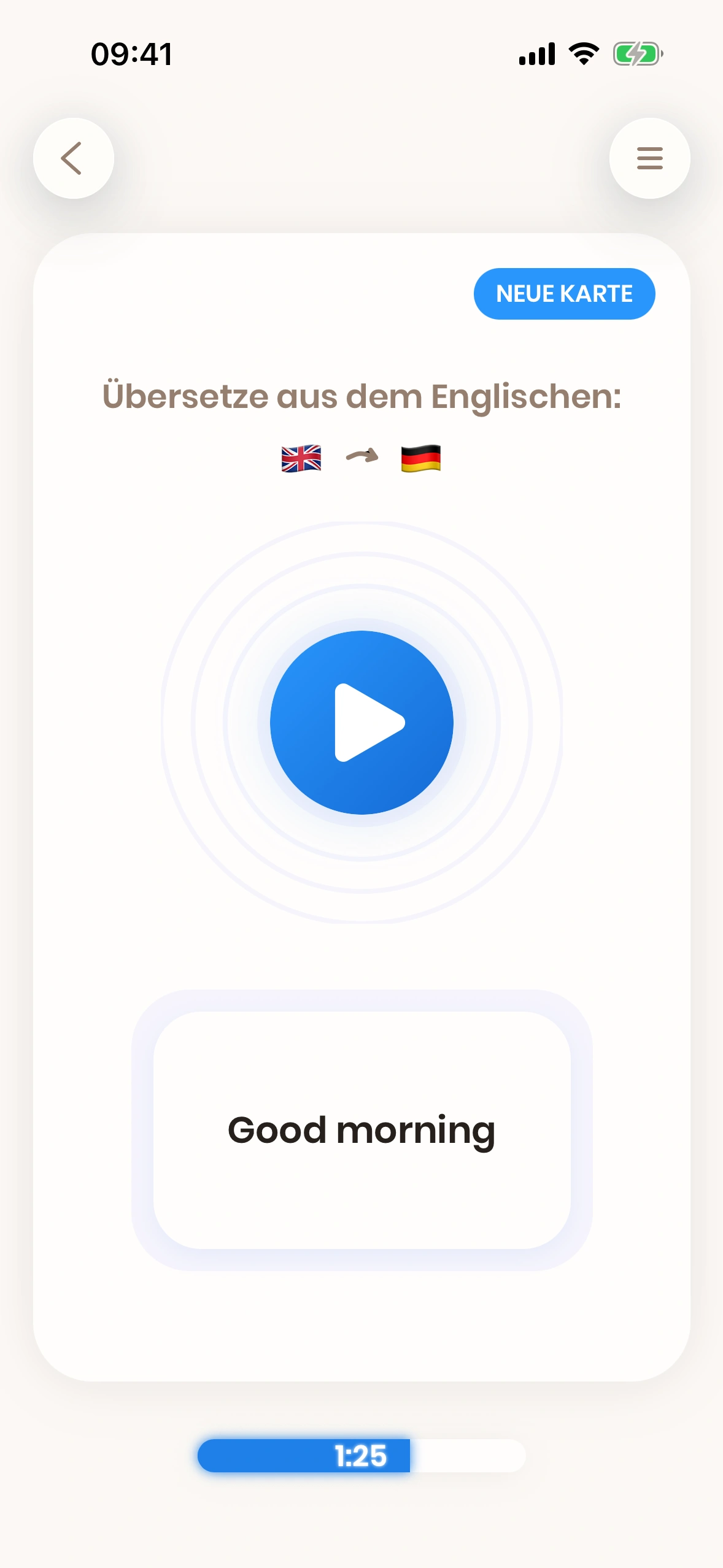 Der Fortschrittsbalken zeigt, wie lange du heute gelernt hast – und wie viel bis zu deinem Tagesziel fehlt.