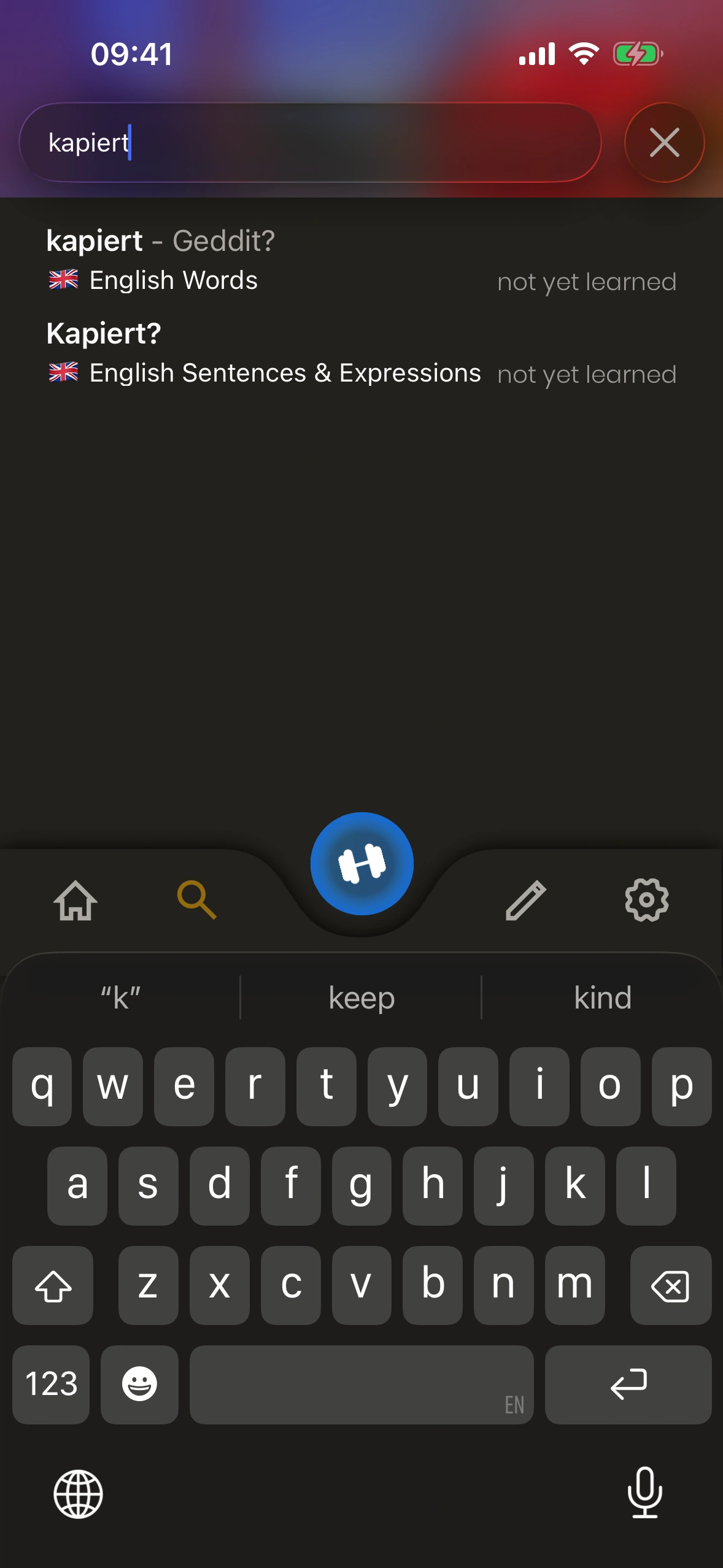 Wenn du ein Wort nachschlägst, enthält die Ergebnisliste verschiedene Kartentypen: