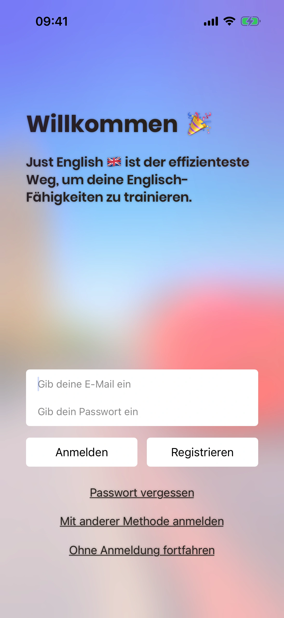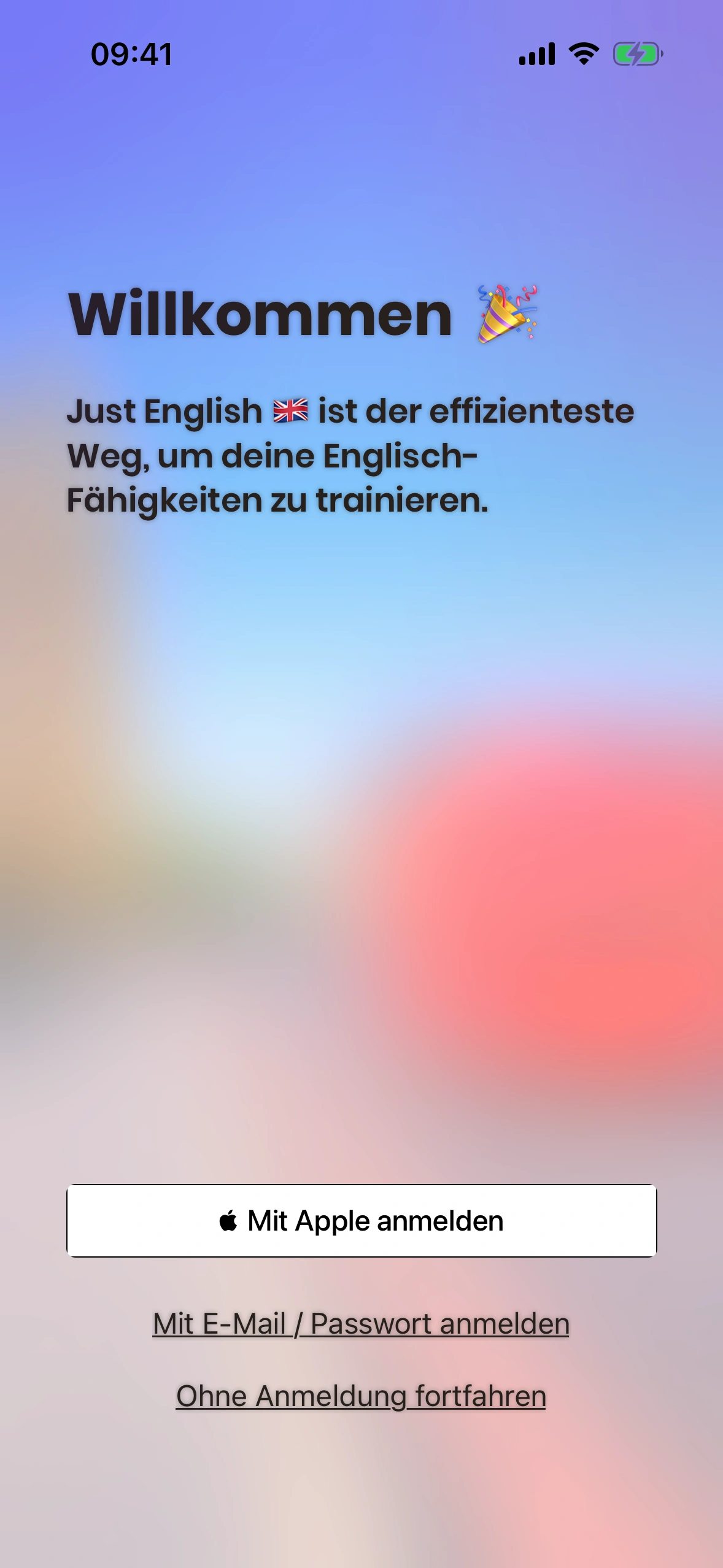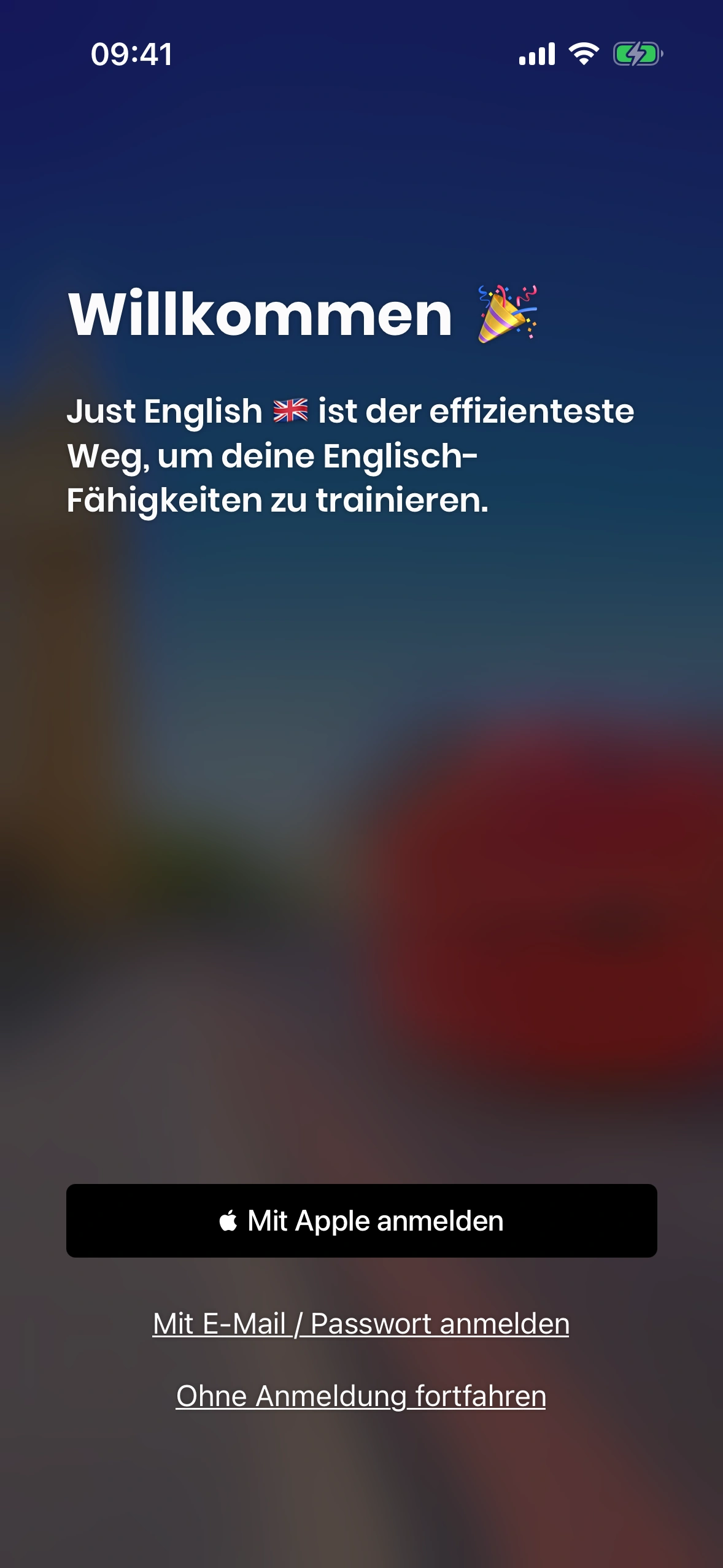 Aktuell bietet Just English zwei Möglichkeiten, dich anzumelden:
