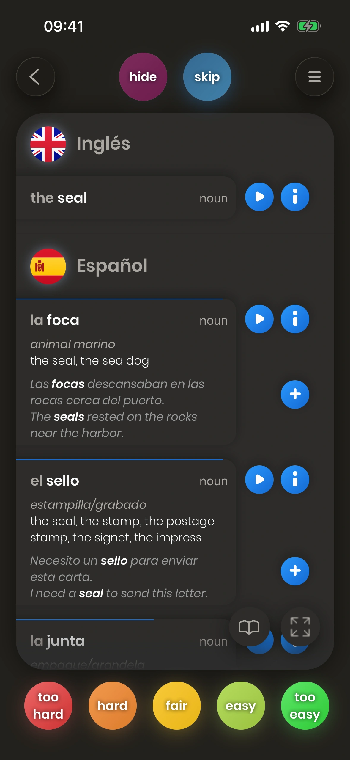 La forma más fácil de nunca olvidar qué significa "seal" en inglés es añadiendo esas frases de ejemplo a tu cola de aprendizaje.