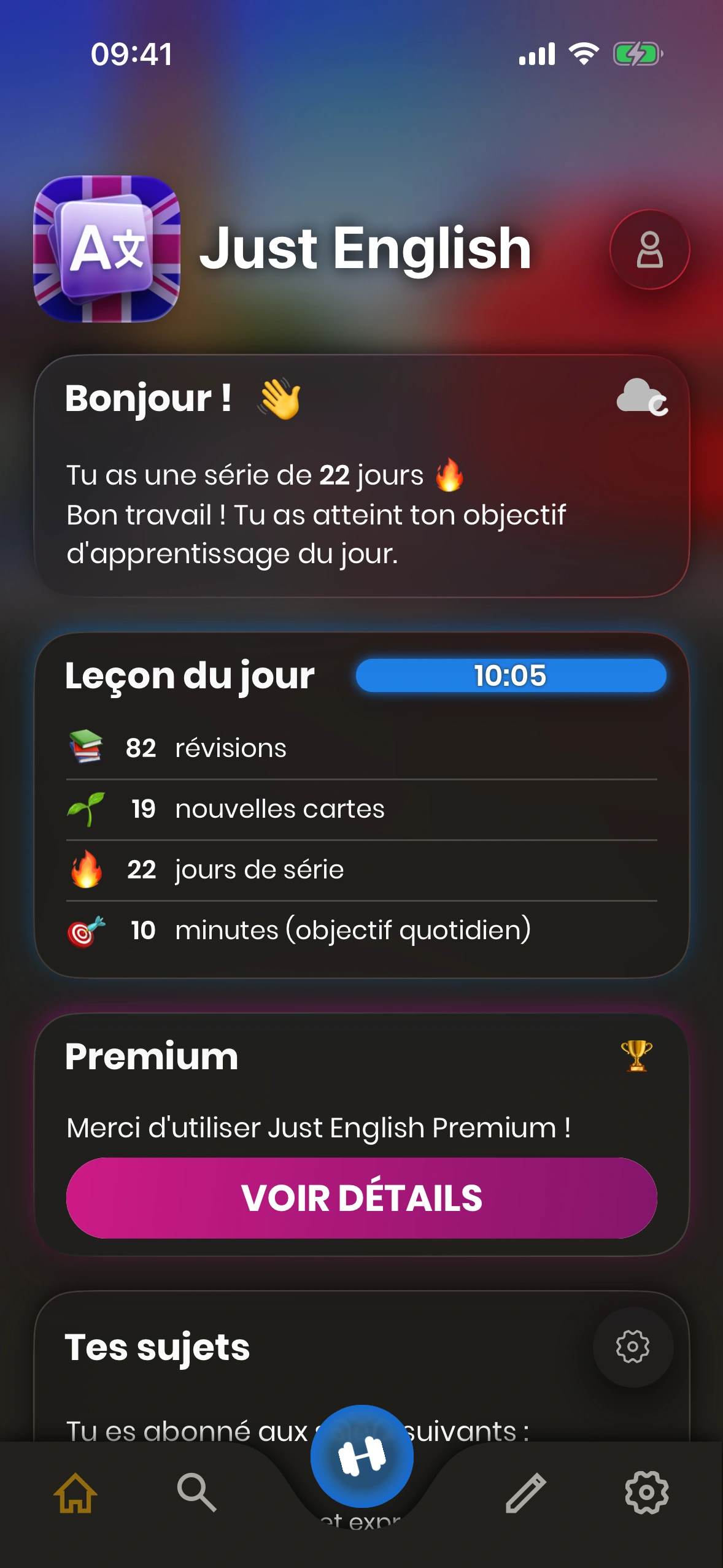 Les jeux et les hiboux, c'est bien, mais si vous préférez progresser vraiment, Just English est l'application qu'il vous faut.