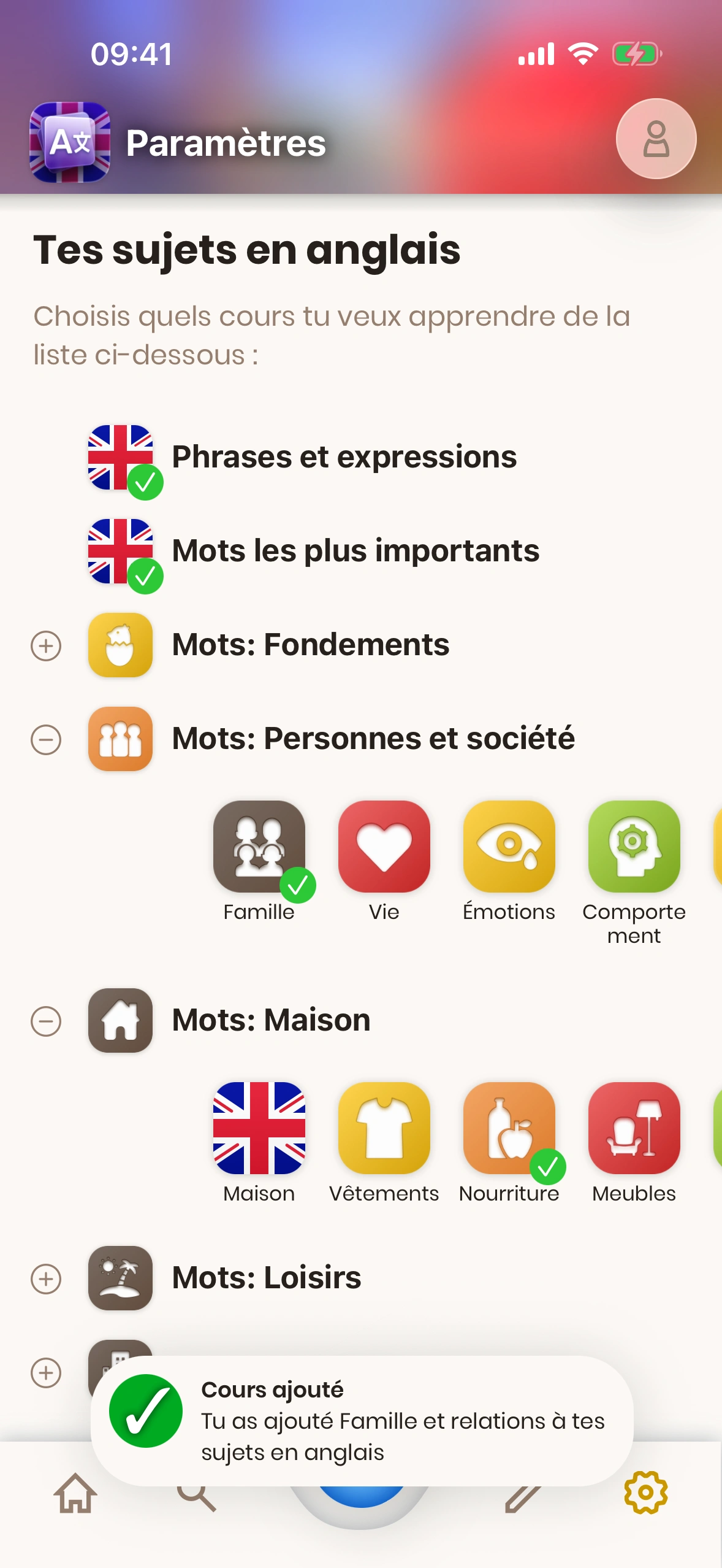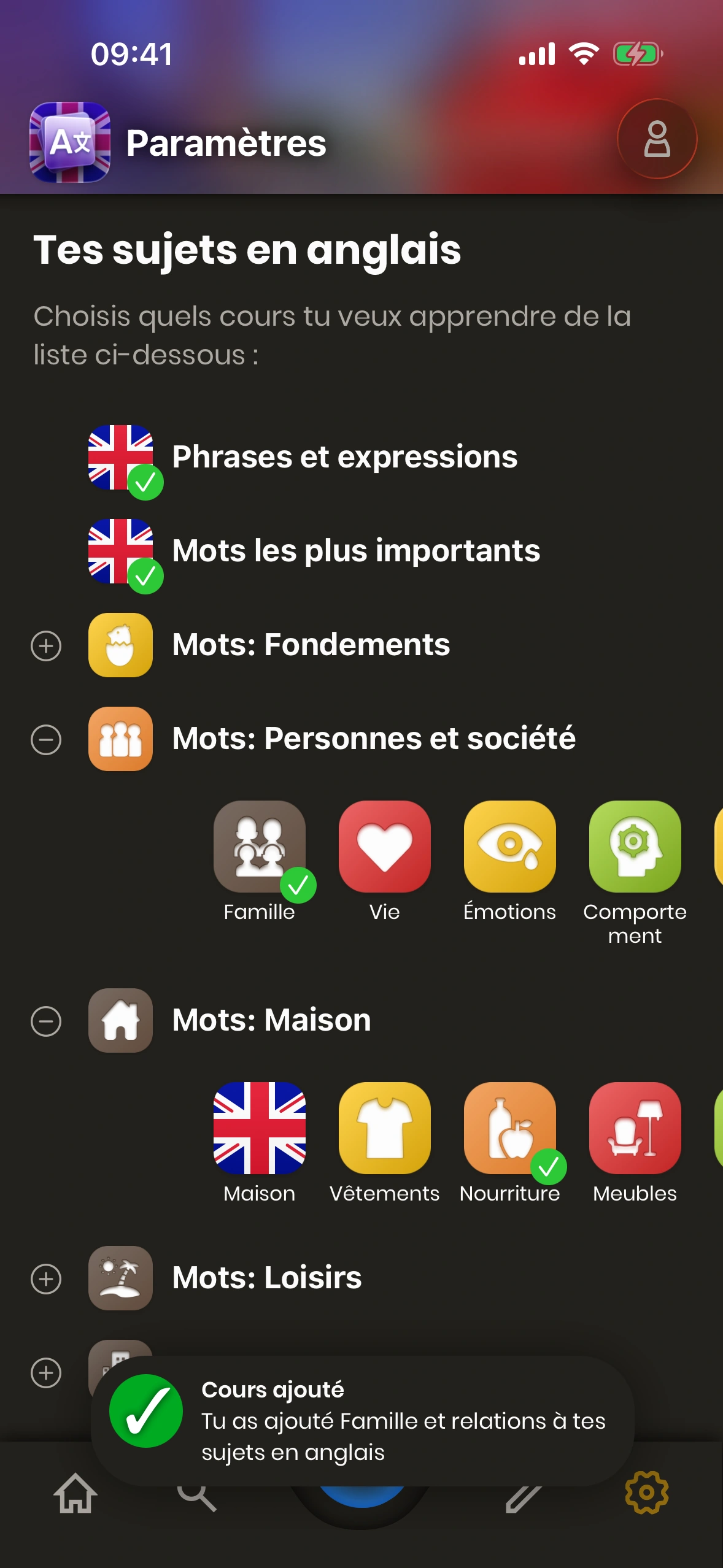 Les nouvelles cartes te sont montrées en fonction de tes cours abonnés.