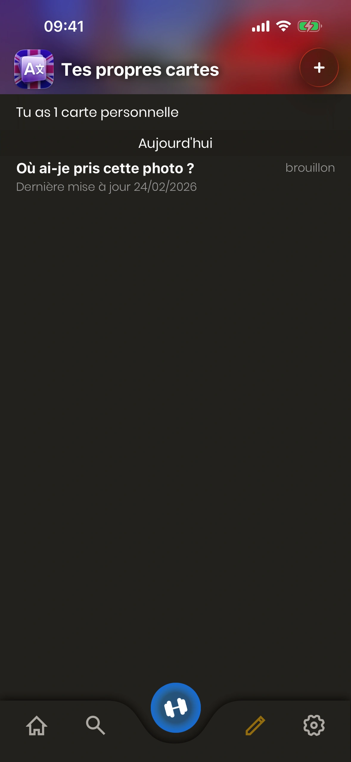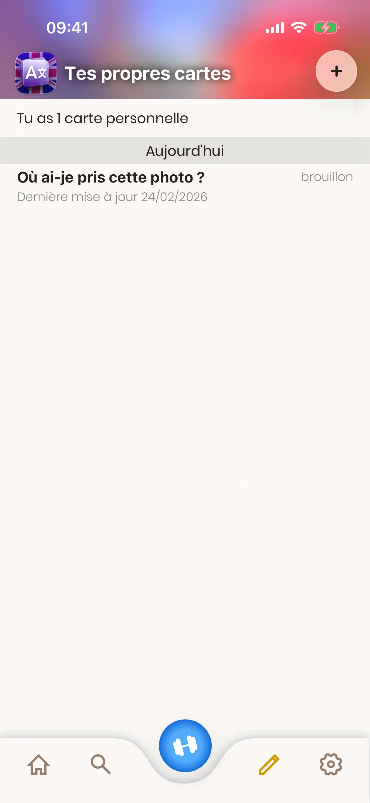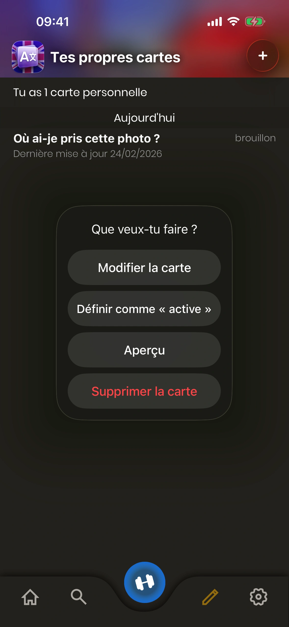 3. Liste de cartes : Dans cette liste, chaque entrée est l'une de tes cartes personnelles. Appuie sur une carte pour la modifier ou la supprimer.