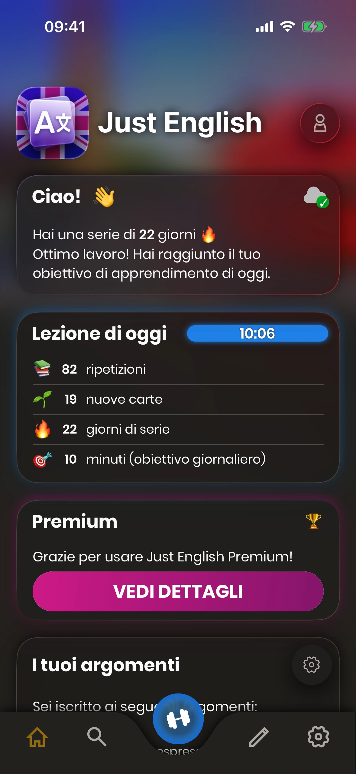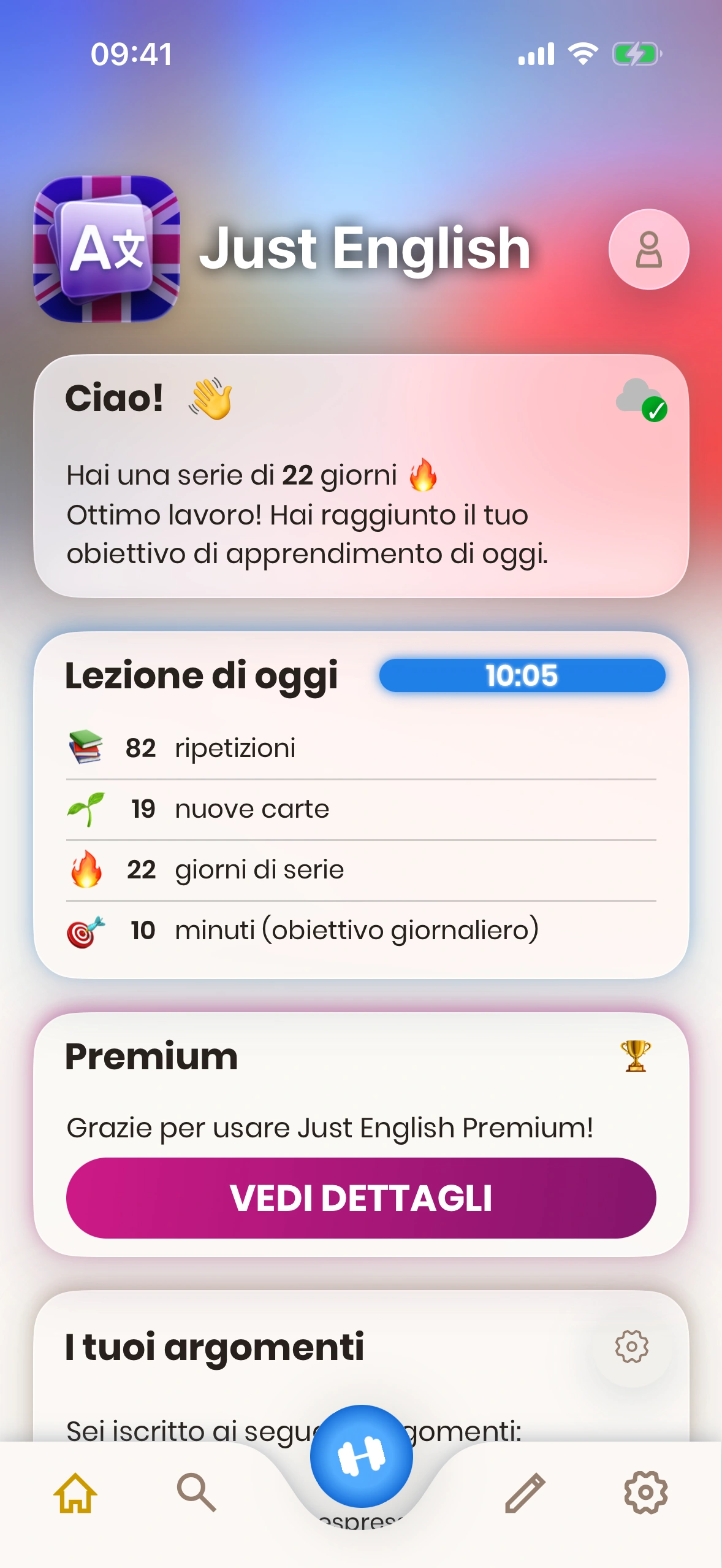 Cerca una parola che non conosci e aggiungila immediatamente alla tua coda di apprendimento. Just English si assicura che tu non dimentichi mai quella parola.