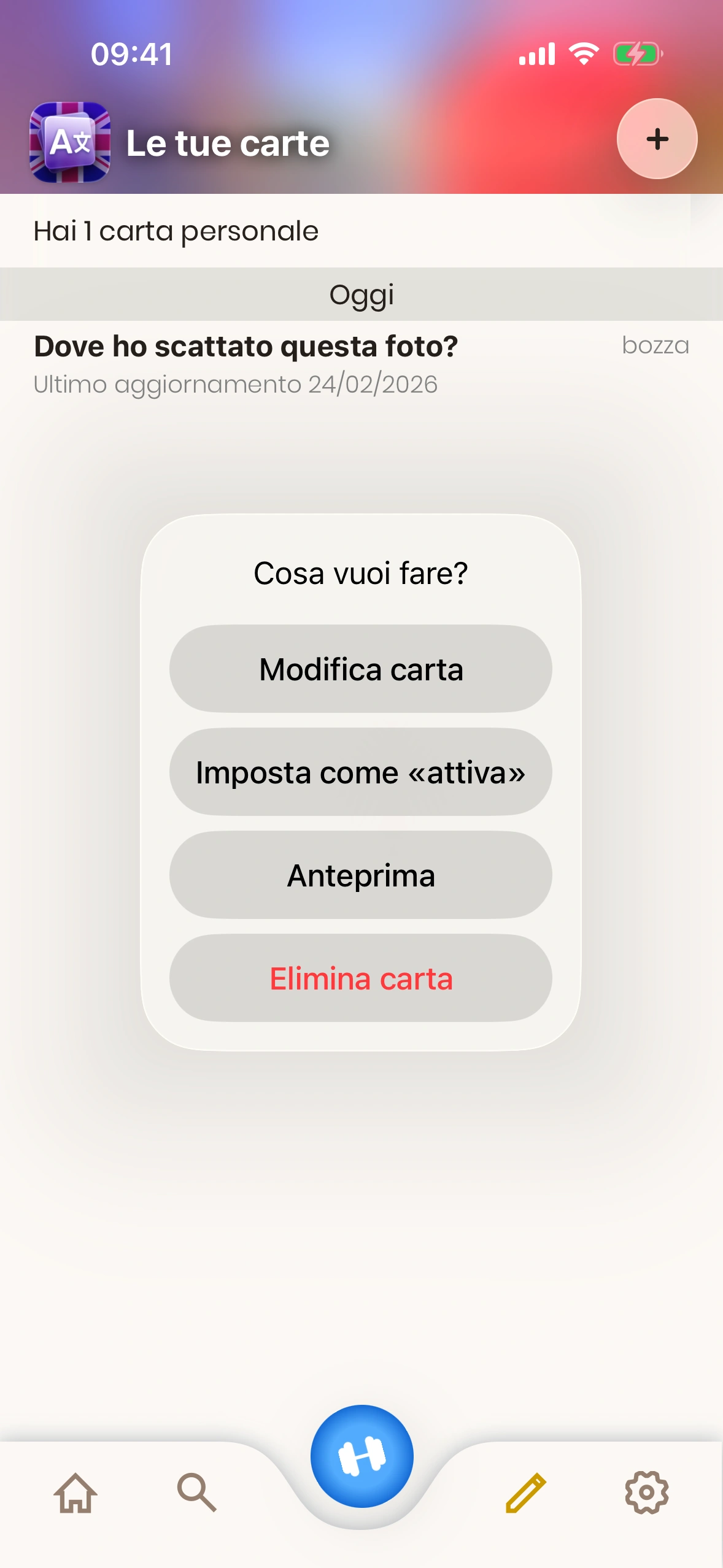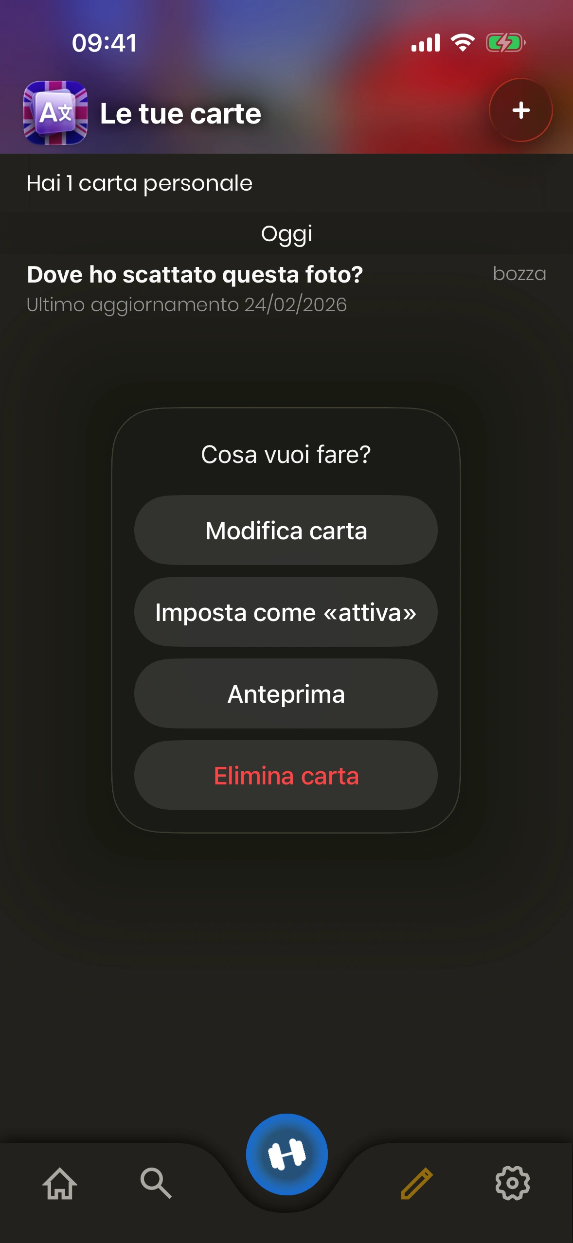 - Stato carta: Una carta personale è in modalità "bozza" o "attiva". Le carte in bozza non vengono mostrate durante l'apprendimento. Per cambiare lo stato di una carta, toccala.