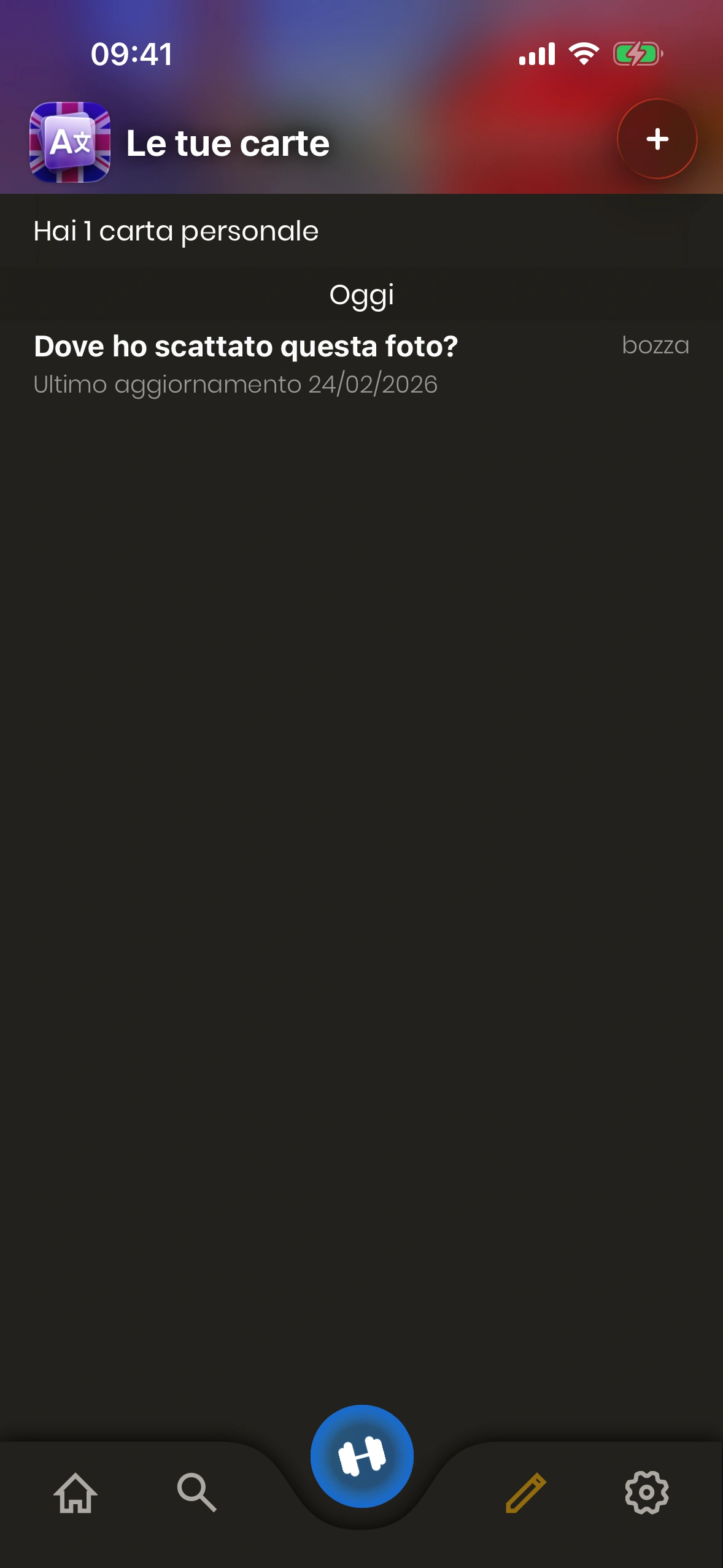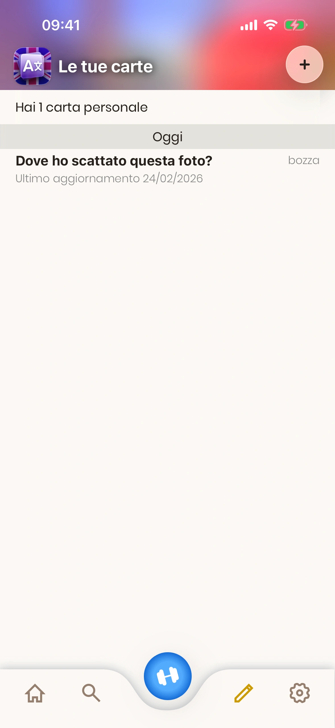 - Pulsante più: Toccalo per aggiungere una nuova carta personale.