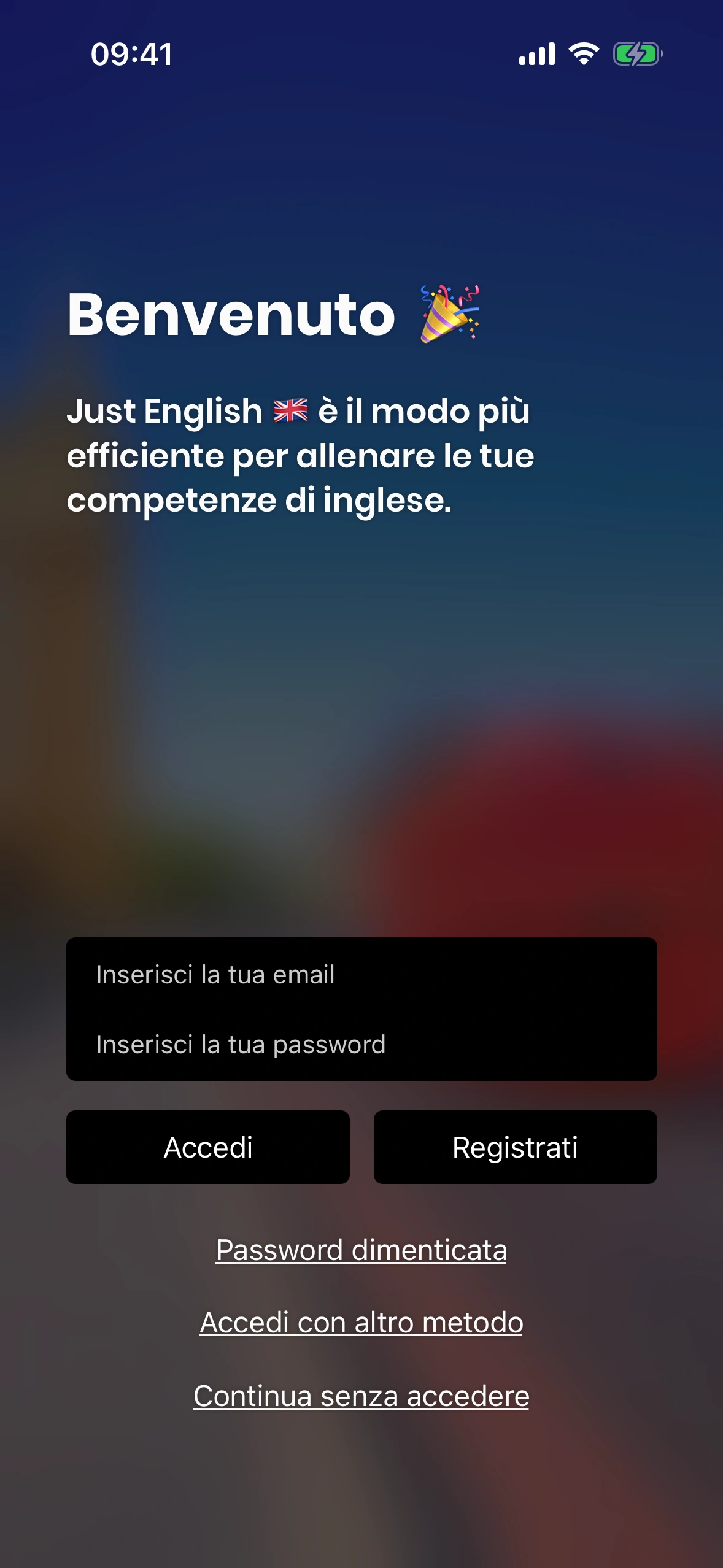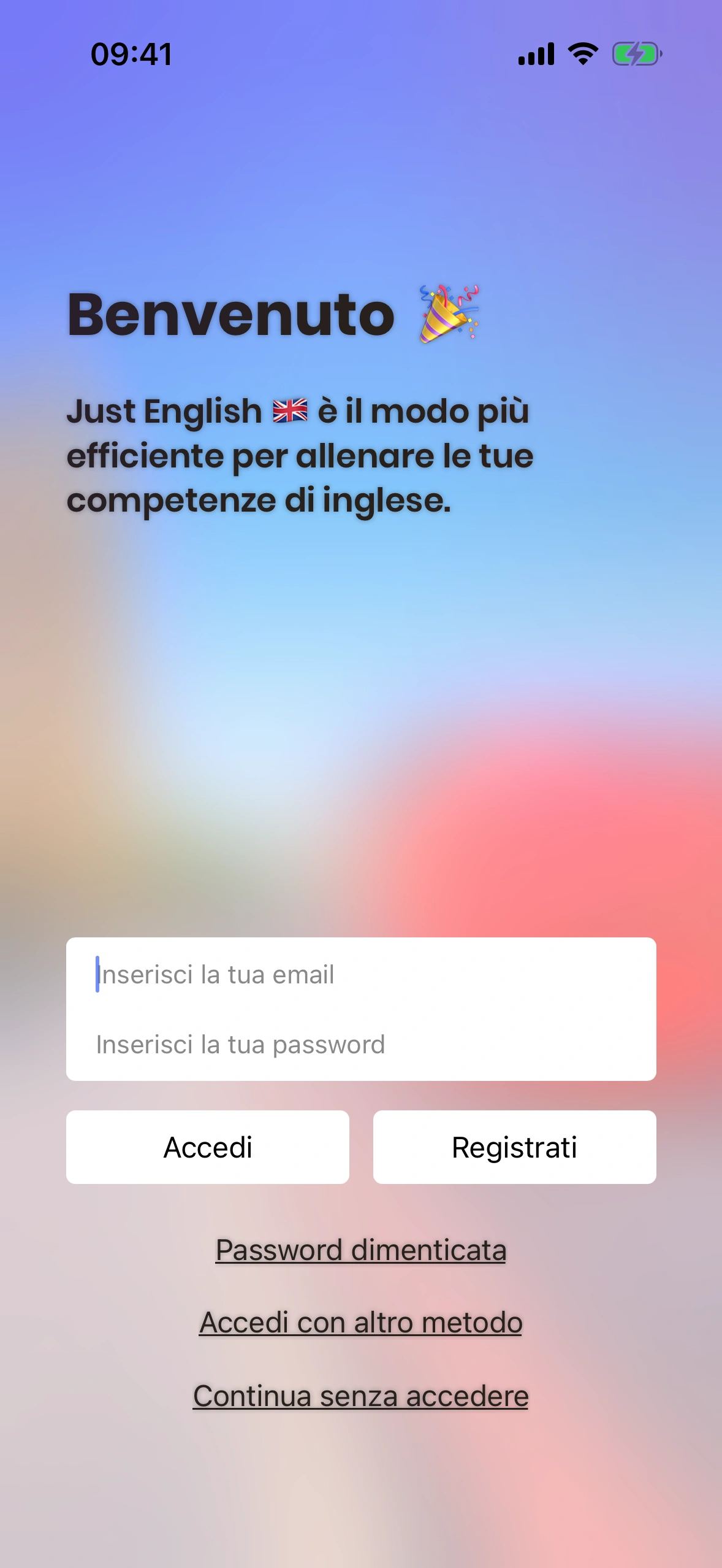 • Il modo più semplice è l'autenticazione Apple. Premi semplicemente "Accedi con Apple" e verrai connesso/a usando il tuo Apple ID.